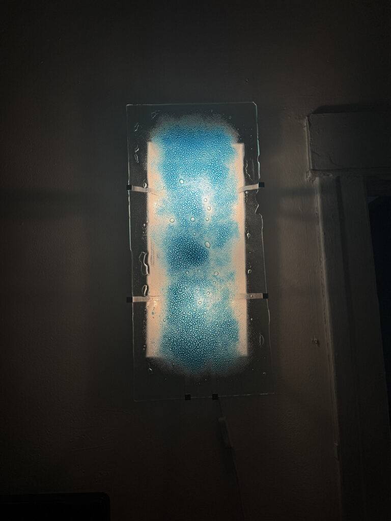 Rather than relying on applied glass paints, the objective is to create color directly within the structure of the glass itself. These experiments form a growing library of surface treatments that can later be integrated into functional objects.