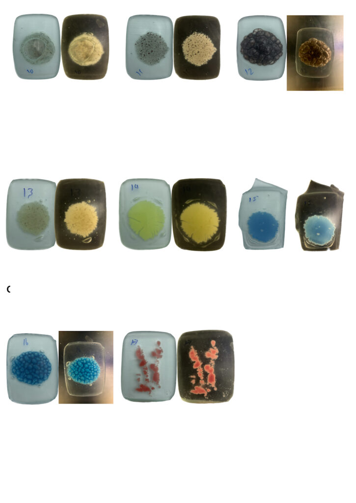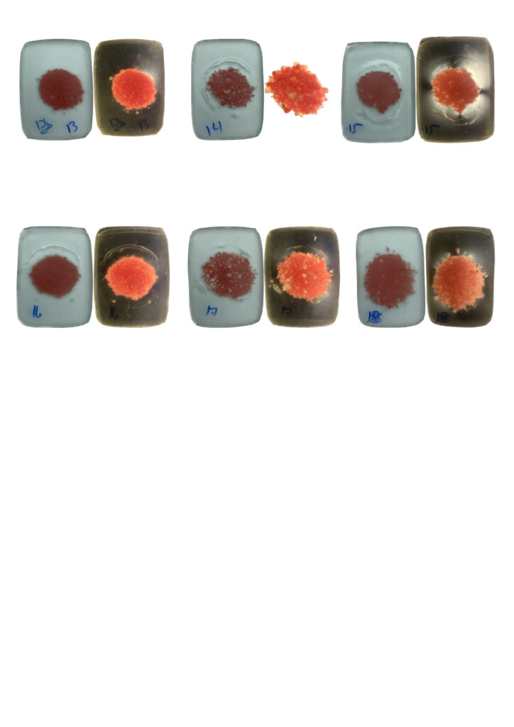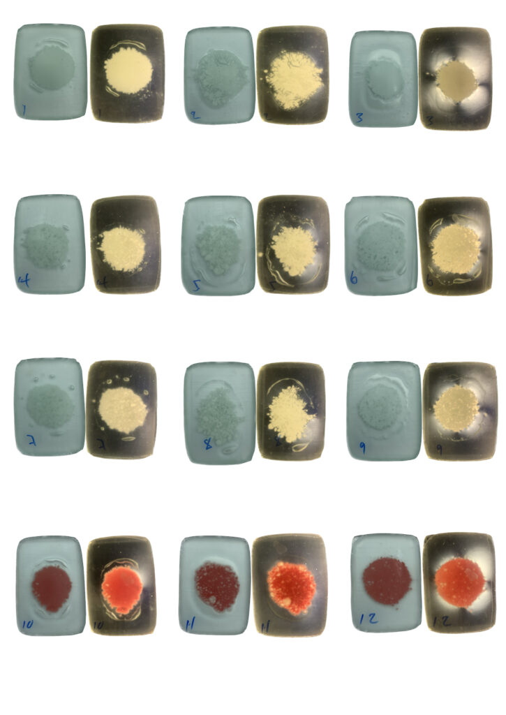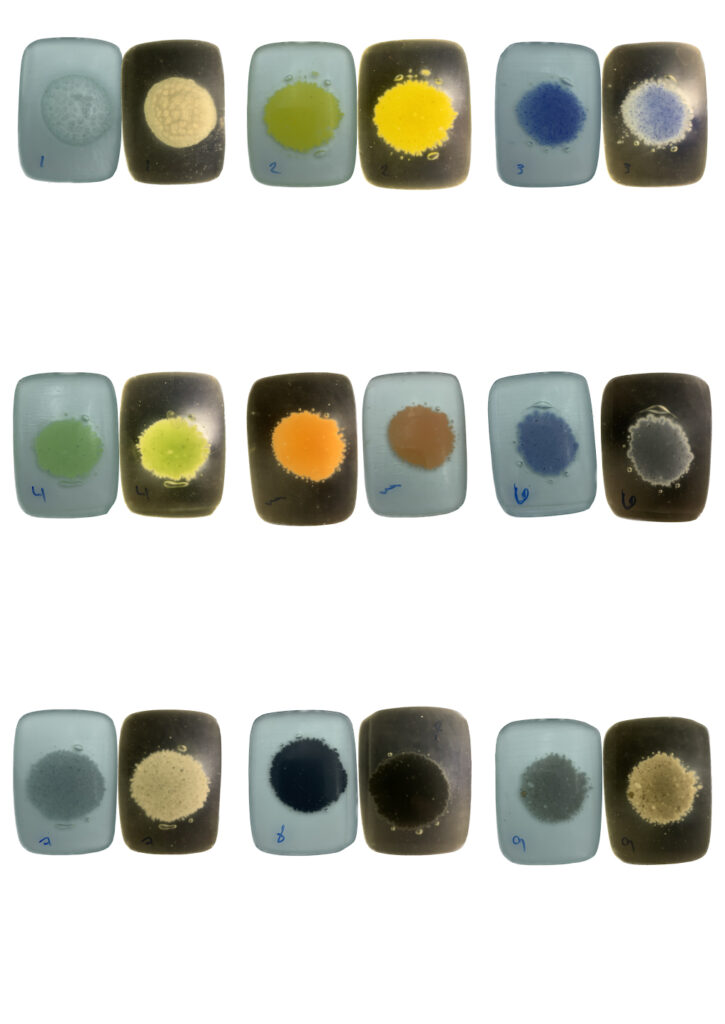 Float glass is an industrial material that is widely available but rarely used for coloration in kiln processes. Drawing on knowledge from ceramic materials, the research explores ways of developing pigments that remain compatible with float glass while becoming permanently integrated within the fused surface.